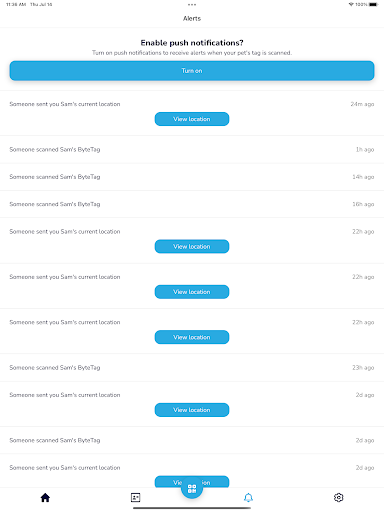 * Get a notification whenever your pet's ByteTag is scanned